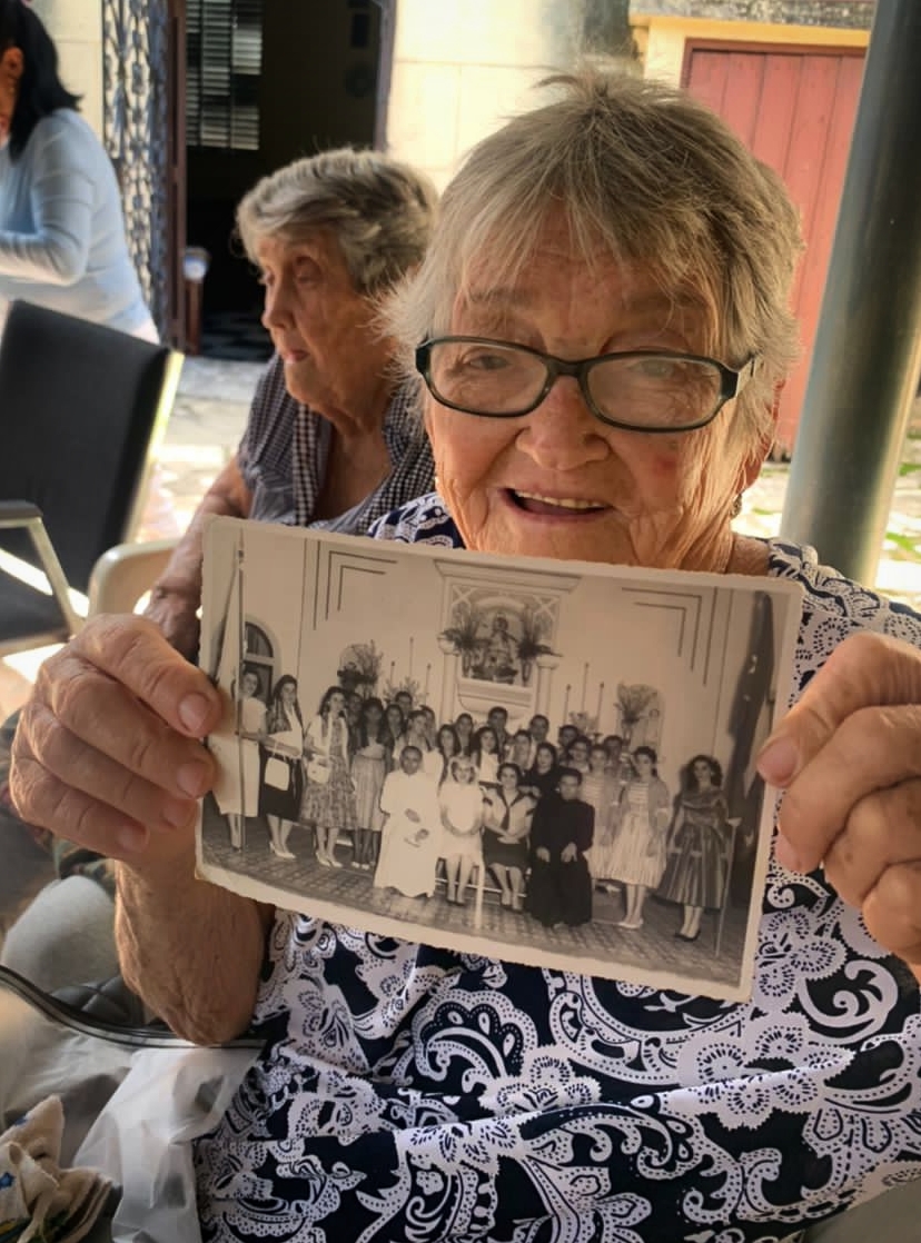 Los actores de Cáritas se complacieron ante las historias de vida de un par de mellizas octogenarias, Elda y Elba, quienes relataron los inicios de su vida en la iglesia y mostraron las fotos de épocas anteriores.