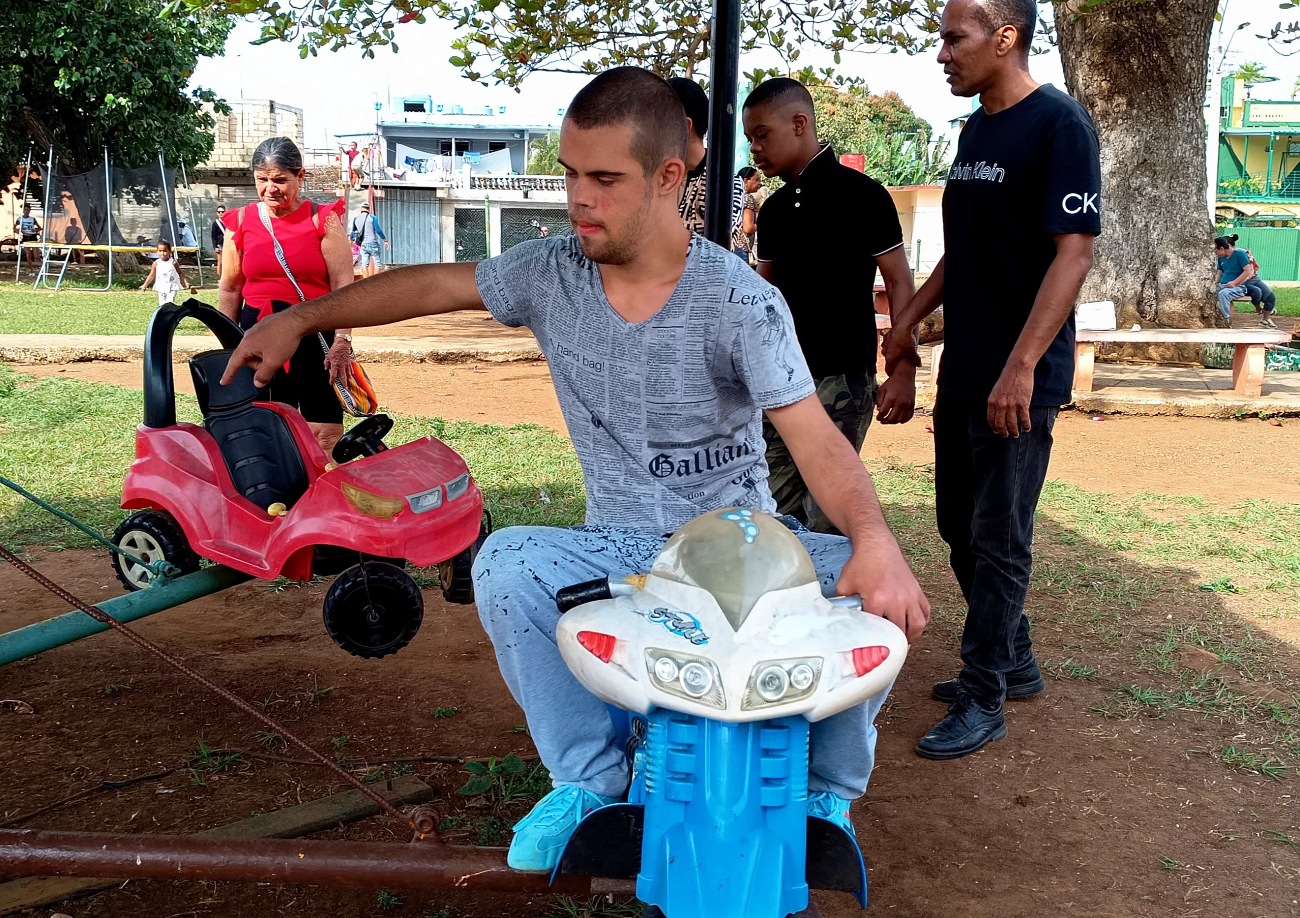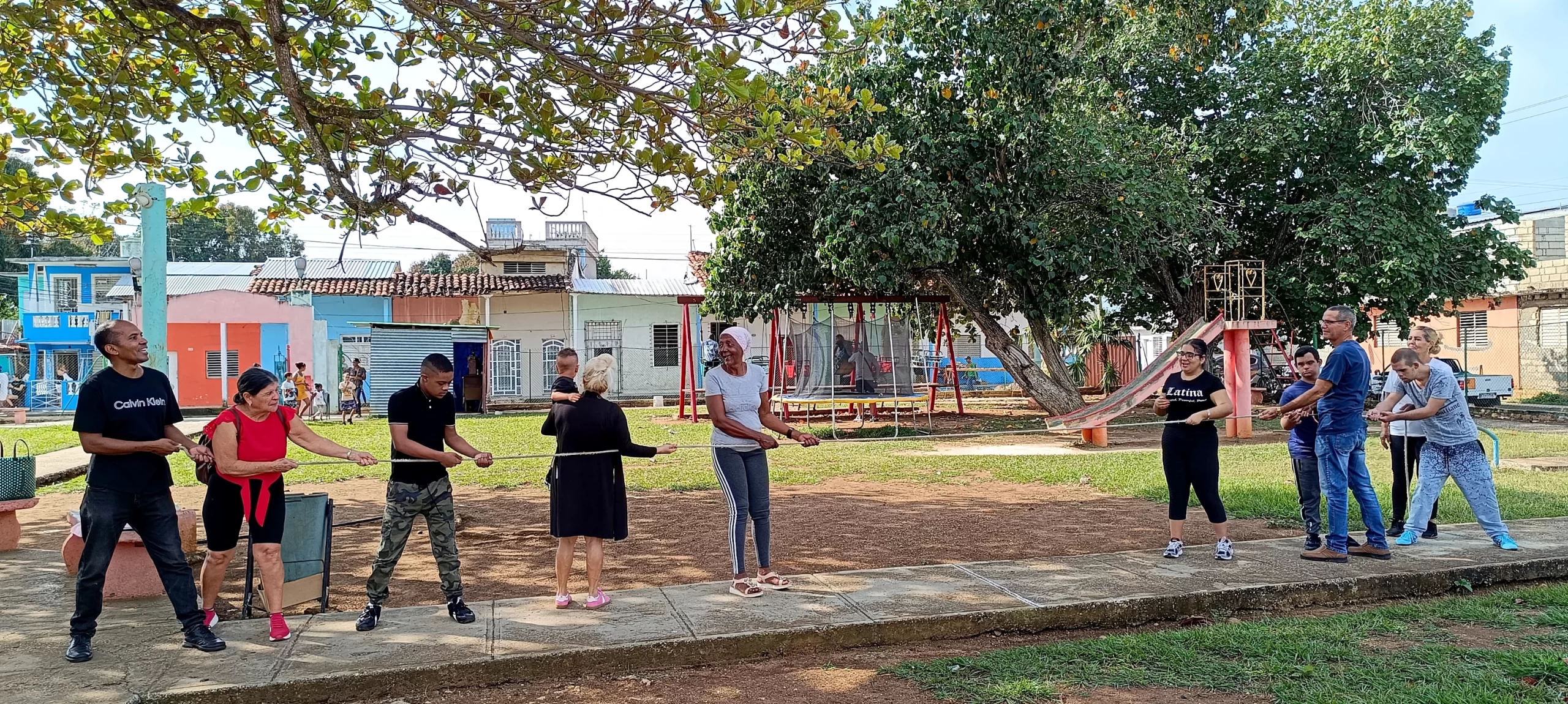 El programa Aprendiendo a crecer de la Parroquia de Morón Nuestra Señora de la Candelaria, se reunió en el parque infantil Luis M. Pardo, conocido como parque «Balinga». En este espacio, se realizaron diversas actividades físicas, incluyendo salto de cuerda, tira y afloja, pase de pelota por pie y salto en el trampolín. Algunos participantes también se dedicaron a dibujar, aprovechando las instalaciones del lugar.