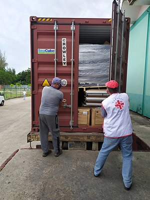Personal del Programa de Emergencias y Ayuda Humanitaria de Cáritas en Cuba ha participado de los procesos de recepción, descarga y almacenamiento de los productos; y en cada Diócesis monitoreará la llegada de estos a destino final.