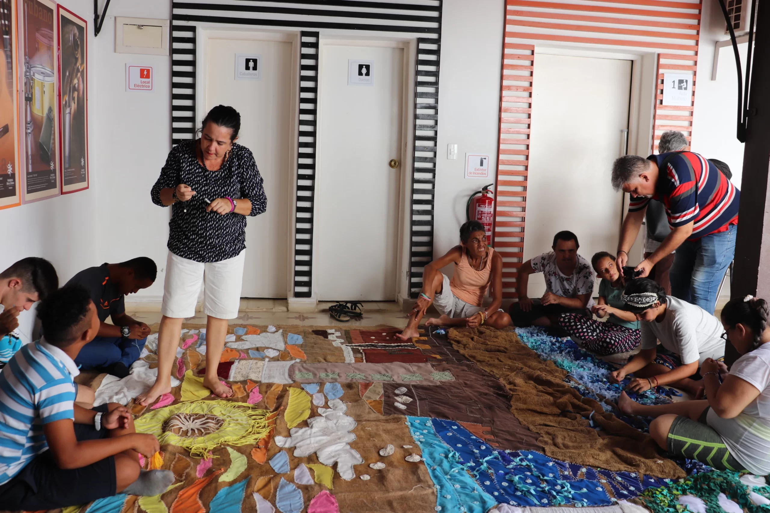 Un enorme tapiz titulado Abrazo textil de Trinidad a La Habana quedó expuesto recientemente en la XV Bienal de La Habana, el mayor evento de las artes visuales en Cuba. La obra, concebida por la artista trinitaria Yudit Vidal Faife y su proyecto Entre hilos, alas y pinceles, aglutinó a más de quince artesanas, bordadoras y tejedoras, junto a estudiantes de la escuela taller Fernando Aguado y Rico, de la Oficina del Conservador en la urbe centro sureña. Sin embargo, lo que hizo más trascendente esta pieza fue la participación de los beneficiarios del taller Con una eterna sonrisa, del programa Aprendiendo a crecer (Aac), de Cáritas Cienfuegos; todos, personas en situación de discapacidad física e intelectual.