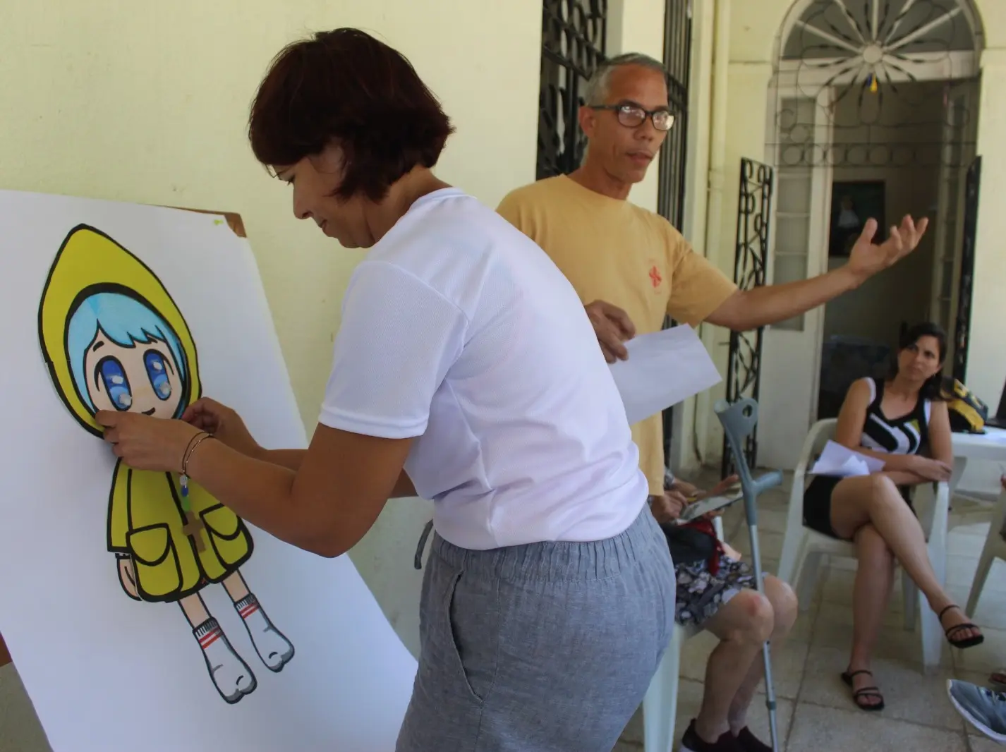 El ejercicio concluyó con la presentación de cada una de las valoraciones, mientras los ponentes colocaron poco a poco los atributos de Luce: ojos luminosos, rosario, impermeable, bordón, botas…