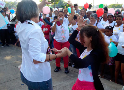 El parque se convirtió en un sitio donde la fiesta fue interminable. Todos se abrazaban con esa alegría espléndida que provocan los reencuentros. Fueron llegando de a poco, y frente al mar el paisaje se hizo más verdadero. Cuando comenzamos a inflar los globos ya estaban allí casi todas las comunidades que en la diócesis atienden el programa Aprendiendo a Crecer, solo algunas no pudieron asistir, pero se les recordó como si estuviesen presentes. Los globos llenaron de colores y de esperanza todas las manos.