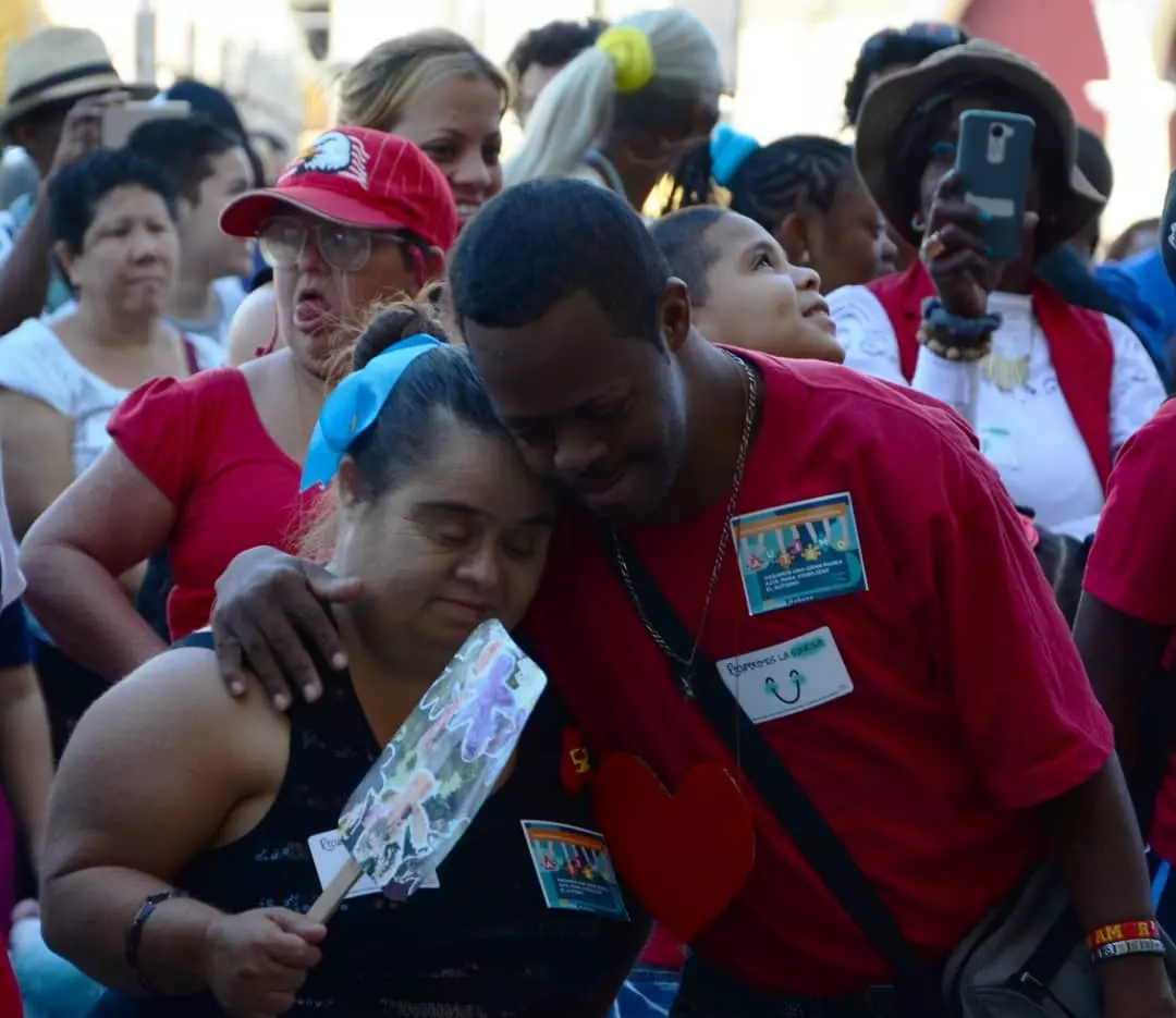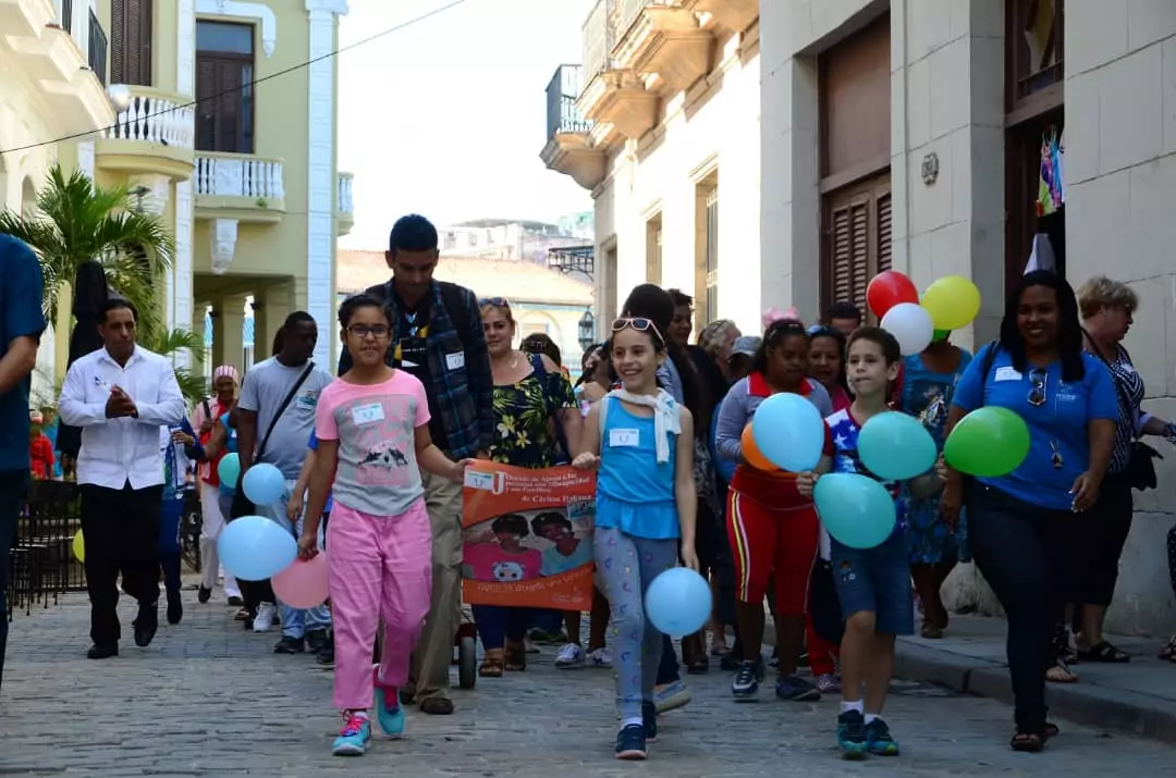 La Habana Vieja se vistió de alegría este domingo, contagiada por las decenas de rostros dibujados de sonrisa que caminaron por sus calles en aras de crear conciencia sobre las necesidades de quienes llegan a nuestras vidas con un don especial: el de ser diferentes y mostrarnos otro rostro de Jesús.