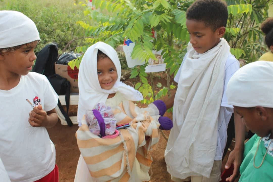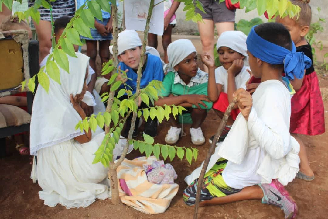 A su lado estuvo como ángel guardián Ruth, madre de la pequeña Angélica, quien recibe con júbilo los encuentros y apoya en todo cuanto se necesite. Gracias a ella se ensayaron los cantos y se preparó el vestuario para la obra.
