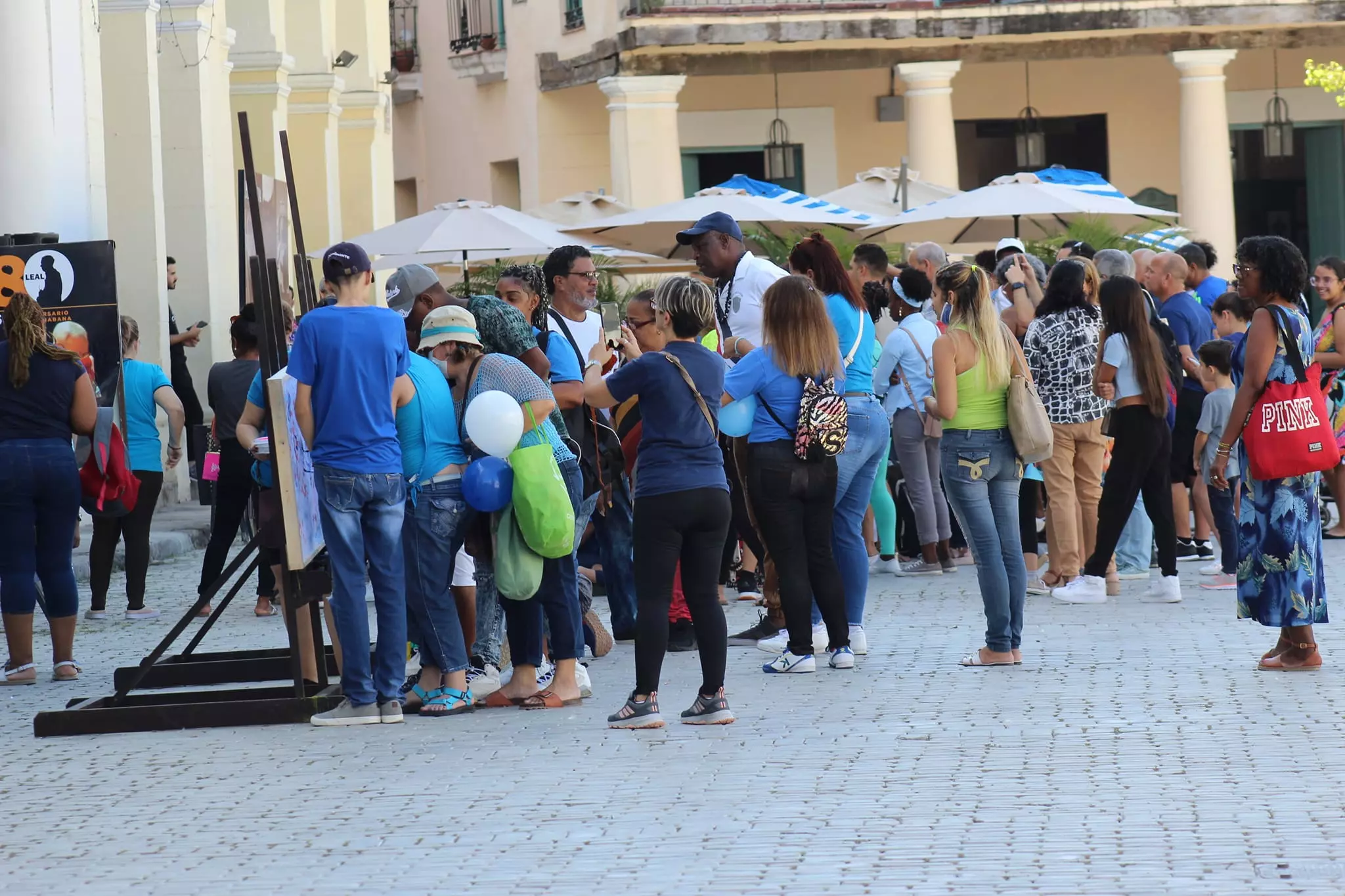 Los padres, voluntarios y coordinadores que trabajan de conjunto con Cáritas Habana para visibilizar la vida de estas personas, explicaban a quienes se acercaban las finalidades de esta acción; sensibilizaban y movían corazones, al tiempo que invitaban a los más pequeños a pintar junto a los beneficiarios las piezas que se encontraban esparcidas en el suelo y los atriles de la Plaza.