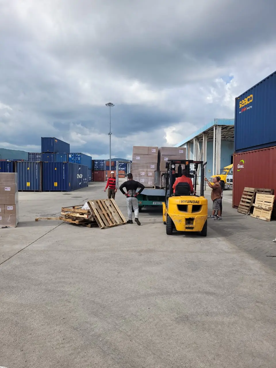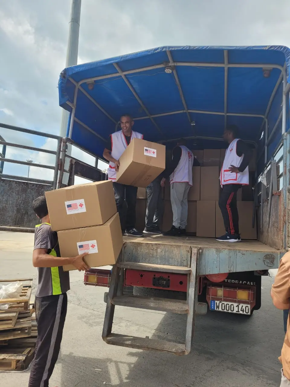 En la tarde de ayer, el equipo de Cáritas Santiago de Cuba culminó la extracción de otros cinco contenedores de kits de alimentos, higiene y hogar enviados desde Estados Unidos, para beneficiar a familias damnificadas tras el paso del huracán Melissa.