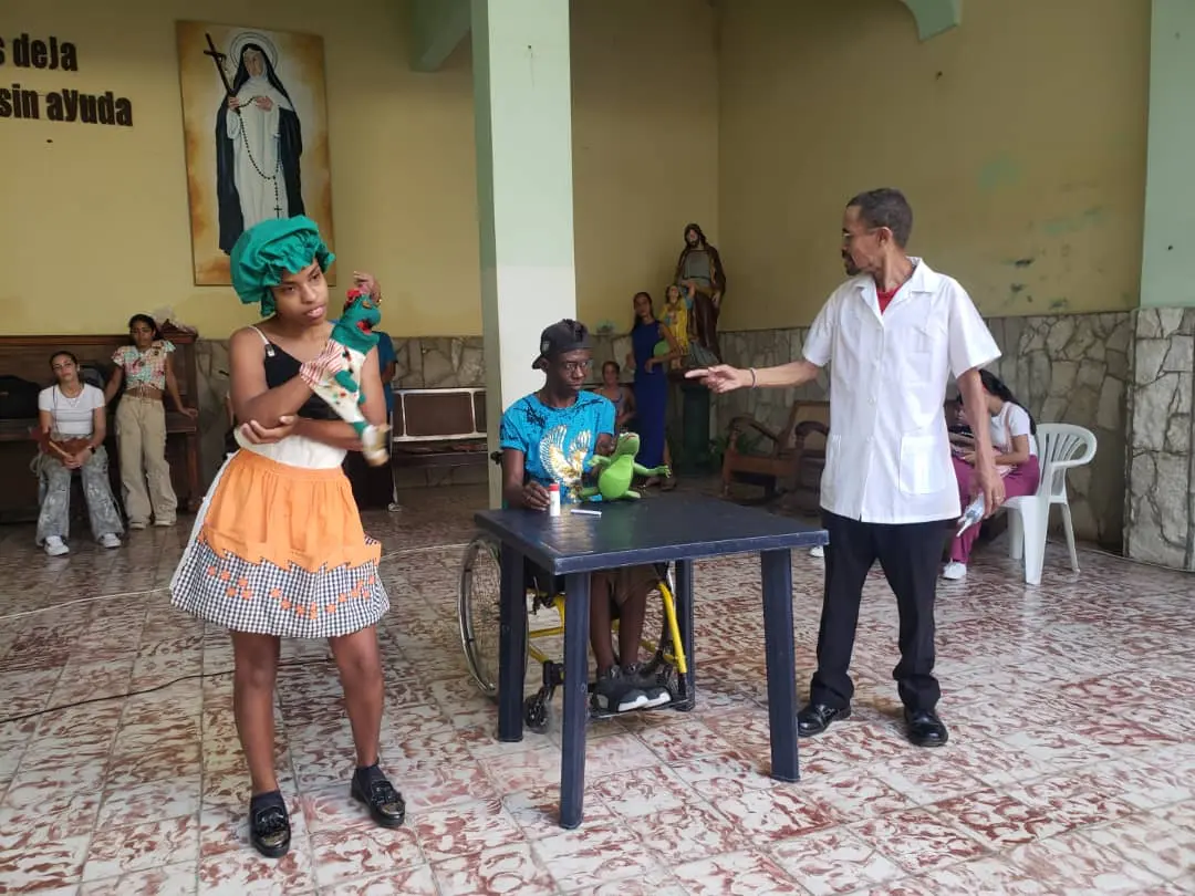 Otro momento especial devino la presentación del grupo de Teatro del taller “Santa Catalina de Ricci” con sus obras “Don Lagartijo» y «Los 3 cerditos», regalo para los beneficiarios y animadores, fruto del Programa Aprendiendo a crecer, muestra de cuánto pueden alcanzar las personas con alguna condición diferente en las esferas del lenguaje, autoestima y socialización.