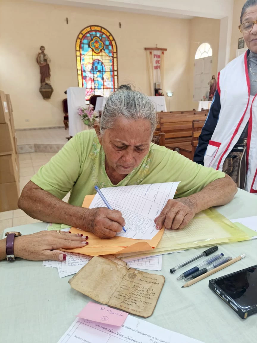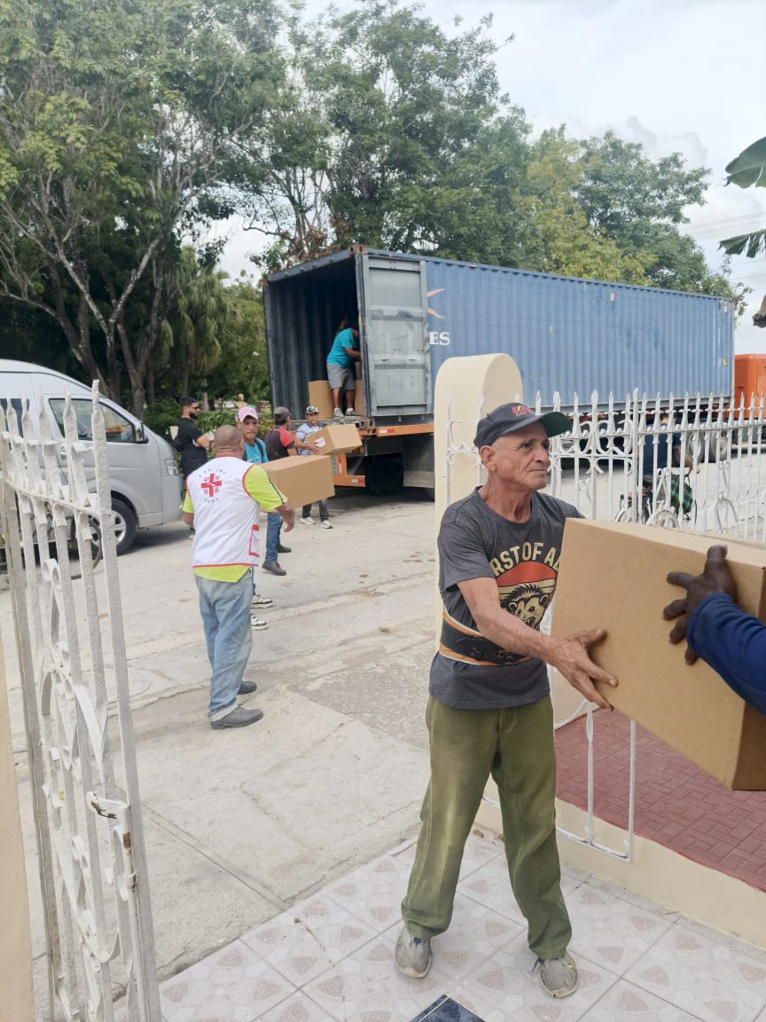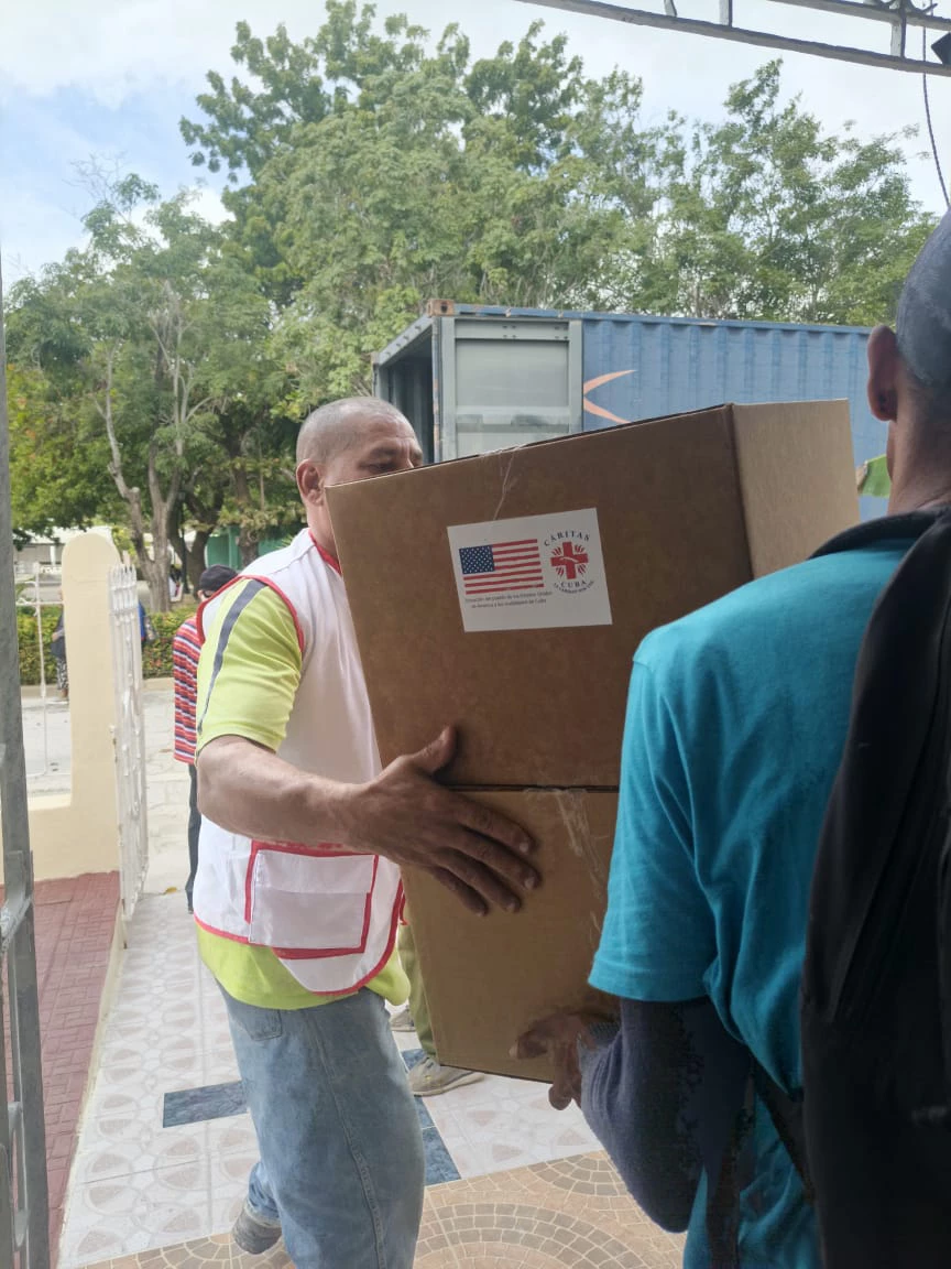 En la Parroquia San Pedro Apóstol de Cacocum, el equipo Cáritas de la Diócesis de Holguín, con sus voluntarios y miembros de las comunidades, comienzan en la tarde de hoy, la entrega de los módulos de alimentos e higiene a las familias damnificadas por el paso del huracán Melissa en el Oriente del país el pasado mes de octubre.