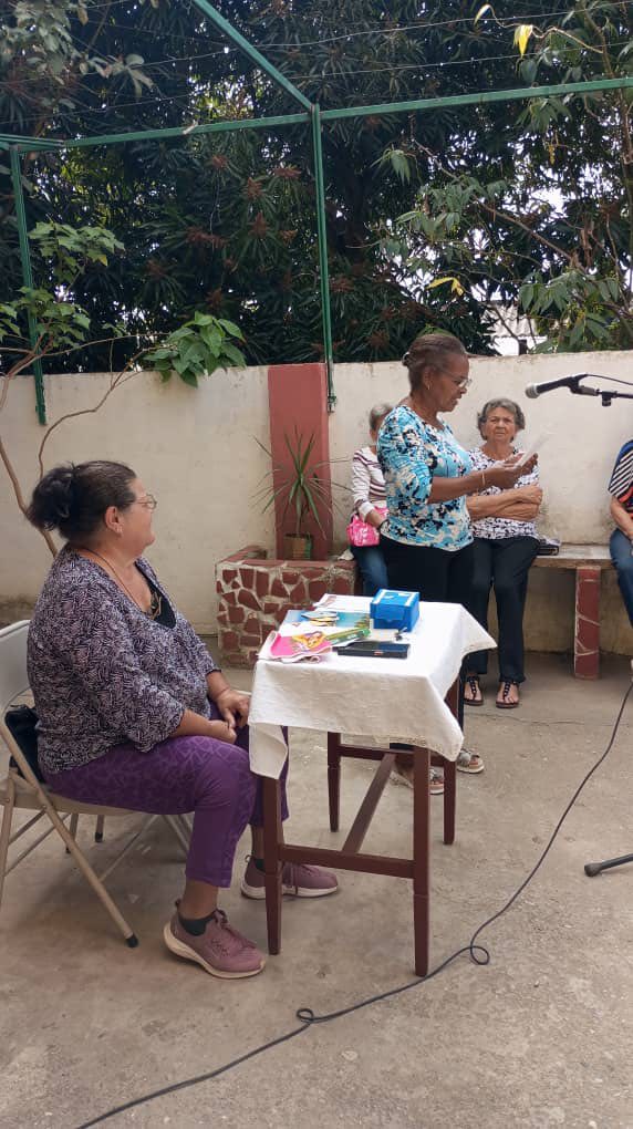 Mayelin puso la nota musical con una hermosa canción, mientras que Yarelis, con su energía, logró que hasta el que no quería terminara bailando, demostrando que la alegría no tiene edad. Al cierre, compartieron una deliciosa merienda con aportes de la propia comunidad y disfrutaron de una rifa de pequeños detalles, confeccionados con mucho cariño por el grupo de laborterapia de la Parroquia. ¡Una tarde inolvidable!