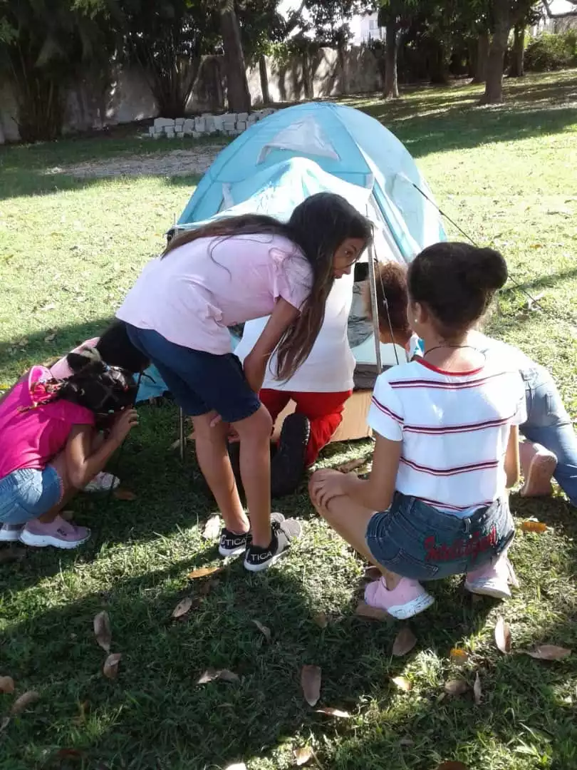 Los niños acamparon en los jardines del lugar y participaron en juegos, dinámicas y cantos. También realizaron manualidades y las obsequiaron a los ancianos, quienes disfrutaron de la actividad y se alegraron con los presentes.