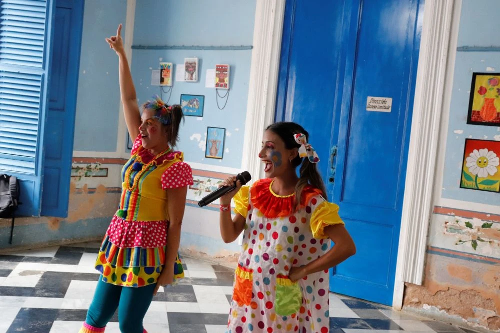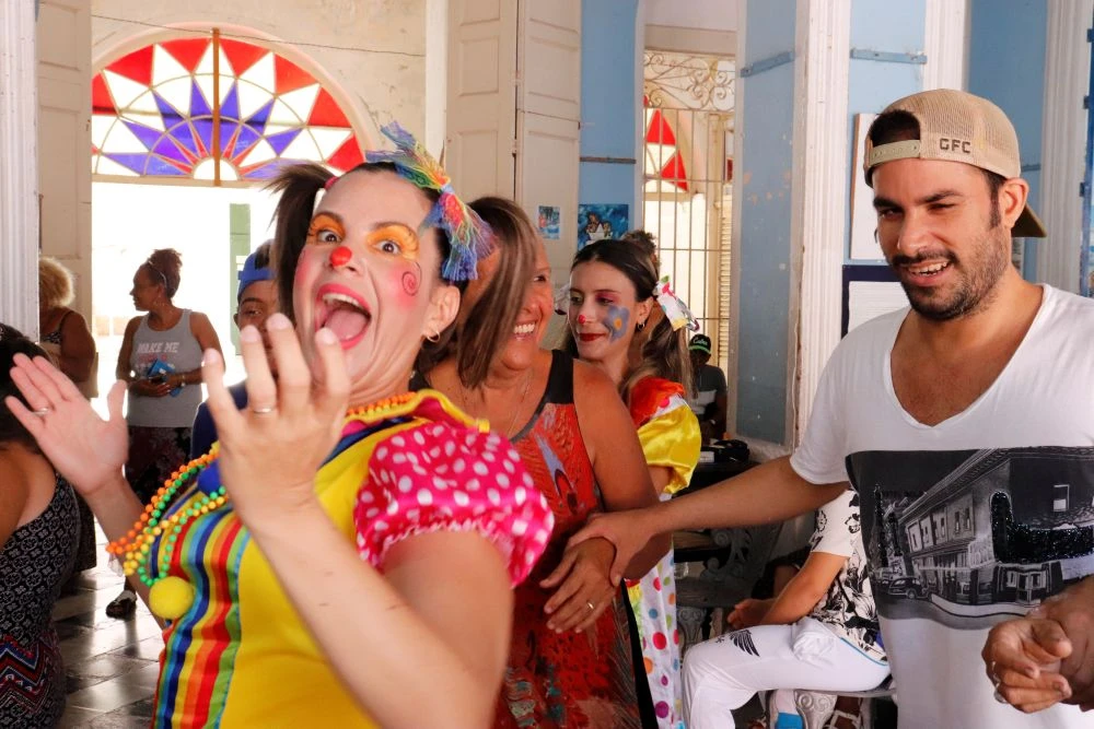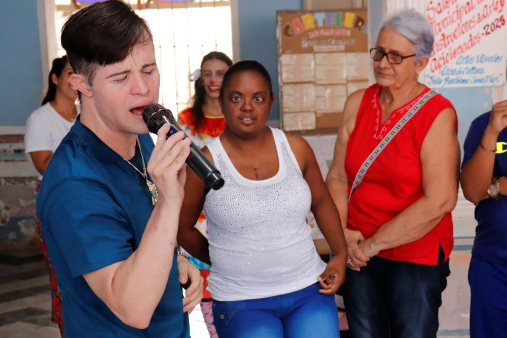 La instructora de arte y animadora Nuria Vega Valdés, junto a la actriz Esther Valladares Fernández, tomaron las riendas del festejo y, apenas salieron, fueron recibidas por un público que reciprocó la alegría y el entusiasmo que ellas regalaron: una pequeña les obsequió un fuerte abrazo; otro retó sus problemas de movilidad para salir a bailar junto a los amigos; y no faltaron quienes interpretaron canciones de artistas famosos y declamaron poemas inspirados en el cuidado de la Casa Común.