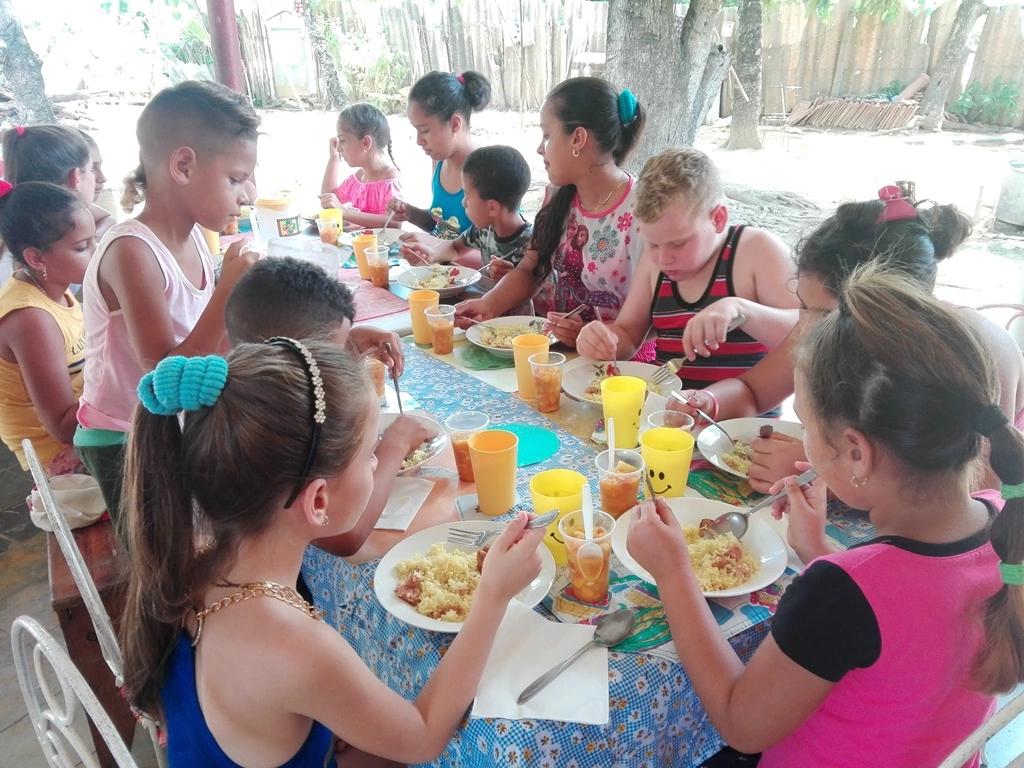 El verano impone la pausa y, para cerrar otro curso en Los Pequeños Gigantes, nada mejor que un brindis entre amigos. Hay delantales, y pañuelos amarillos para cubrir el cabello, y tablas de cortar, y varios cuchillos; y por allá se pelan las guayabas, piñas, mangos y plátanos; y por acá se corta el jamón y se mezclan la mayonesa y las aceitunas con los coditos. Todo es hecho por muchos, pero el resultado es uno: una ensalada fría deliciosa, un coctel refrescante…. De eso va GDH y los 20 talleres que patrocina en la región centro sur del país, de incluir a los “excluidos”, sin discriminación de ningún tipo, con Dios al centro de la formación de valores, afirma Edith Martínez González, coordinadora del programa en Cienfuegos. Los aromas esparcidos por Simpatía, en la sonrisa de niños tan humildes como Jose, son penetrantes. A la salida del pueblo, por el mismo atajo, el mundo ya no se resquebraja.