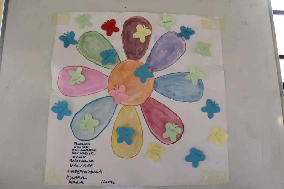 “En un segundo momento procedimos a confeccionar “La flor de la autonomía”. A cada participante se le entregó una mariposa de papel y un lápiz para que, en una frase corta, expresaran su criterio sobre el tema trabajado. Entre las ideas expuestas sobresalieron: puedo pedir ayuda sin dejar de decidir; conozco mi ritmo y lo expreso; una decisión pequeña cada día es un gran paso”.