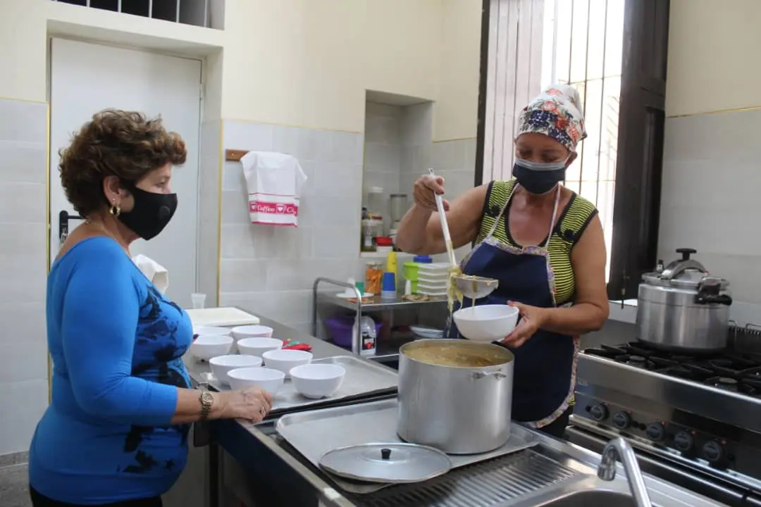 “Brindamos atención dos veces por semana. El martes elaboramos una especie de “sopón” y los viernes el menú incluye arroz, carnes, viandas… Nuestro principal objetivo es que no solo vengan a comer, el alimento es un plus, lo esencial es sentirse acompañado, escuchado, acogido.