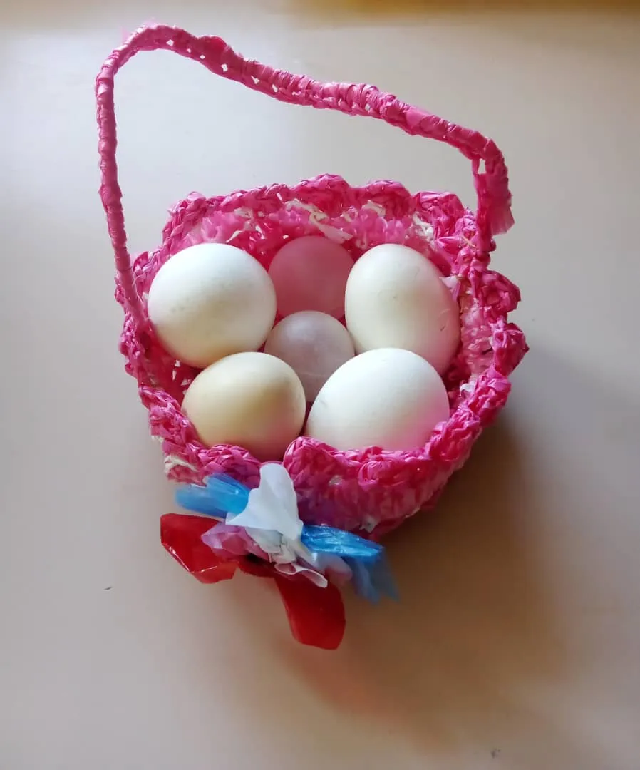 Las piezas, fueron confeccionados con jabas de nylon recicladas, picadas en un solo hilo y tejidas a crochet.