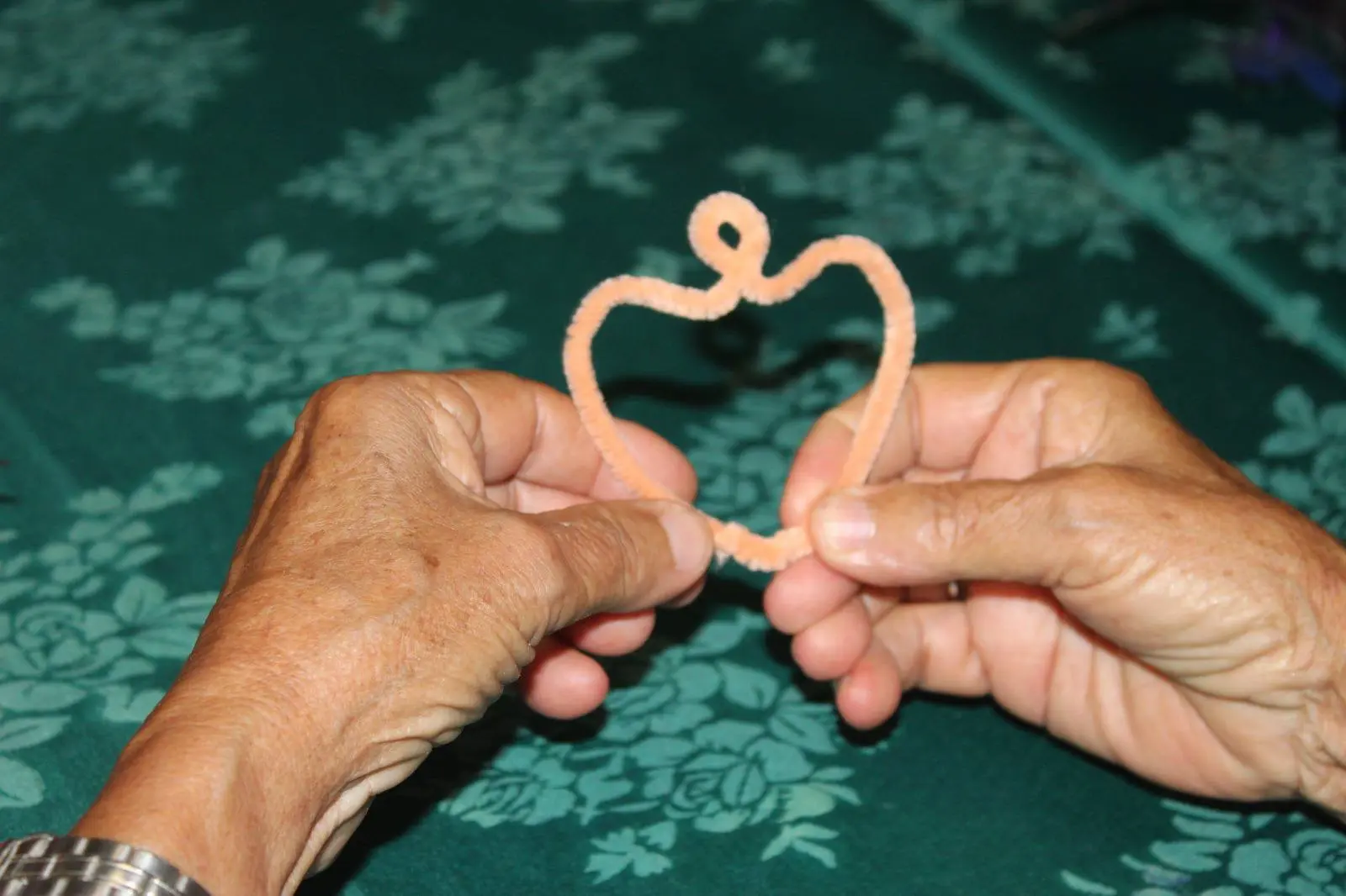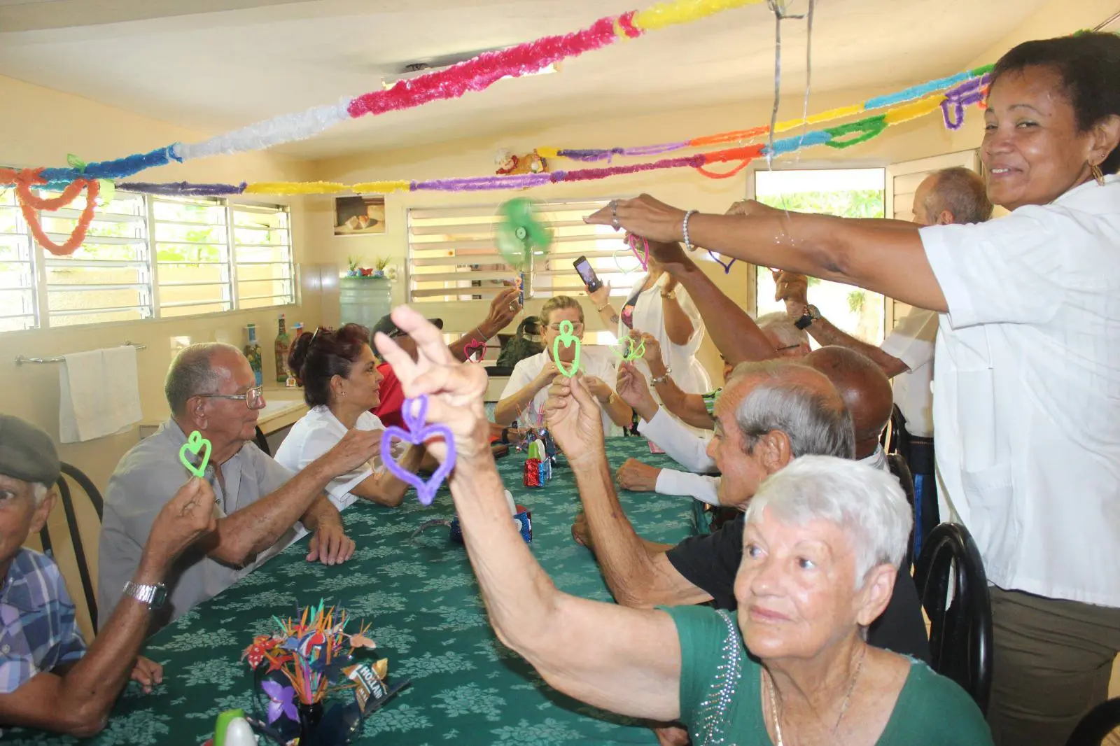 Con imaginación y sensibilidad, los “limpiapipas” multicolores fueron desdoblándose hasta adquirir forma de corazones, flores… Algunos prefirieron guardarlos como recuerdo de la jornada; otros lo obsequiaron al instante junto a un abrazo, o un beso que se posó suavemente en los labios de quienes prometieron amarse también en este tiempo de cabellos blanquecinos.