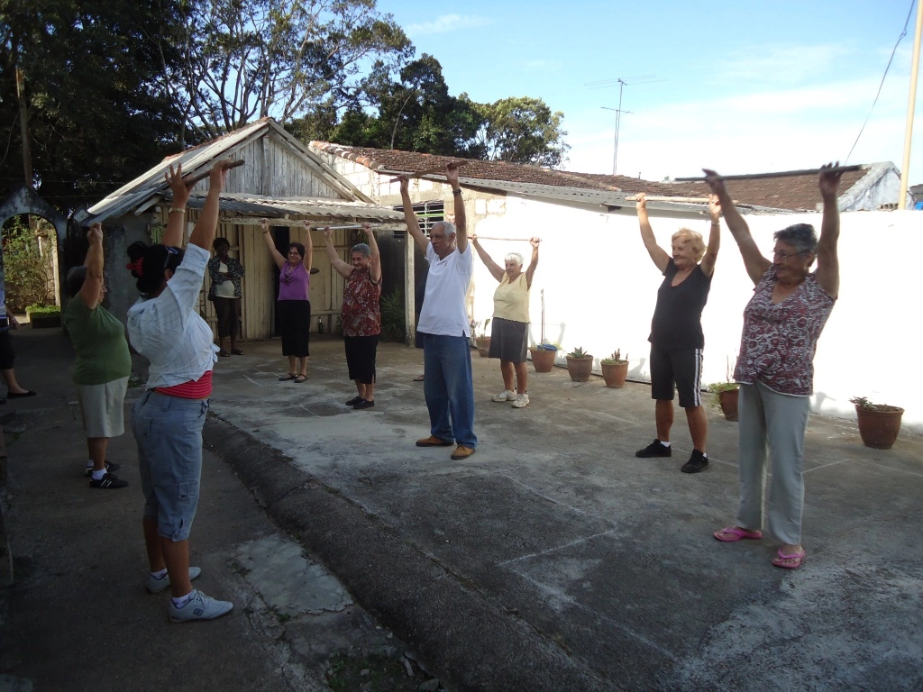 Con gran satisfacción acompañamos a grupos de cultura y recreación en los que hombres y mujeres “que peinan canas” realizan ejercicios físicos de acuerdo a su edad, enfermedades que padecen y estado físico-motor, siempre guiados y monitoreados por jóvenes profesores de educación física del INDER (Instituto de Educación Física y Deportes de Cuba).