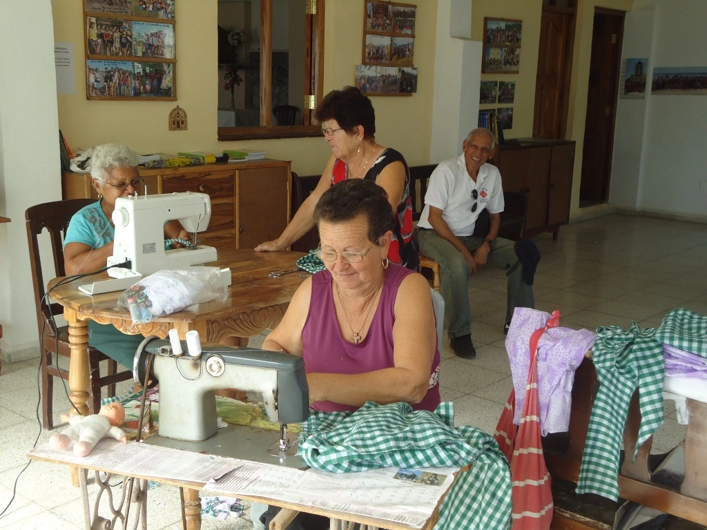 En la legendaria ciudad de Remedios acompañamos a un grupo de mujeres que realizan labores de costura y manualidades, ellas trasmiten sus conocimientos a niñas y jóvenes adolescentes, los sábados, animadas por Migdalia y “Chabela”. Cerca de este local encontramos a “Yiyo” enfrascada en la elaboración de desayuno y almuerzo para un grupo de personas mayores.