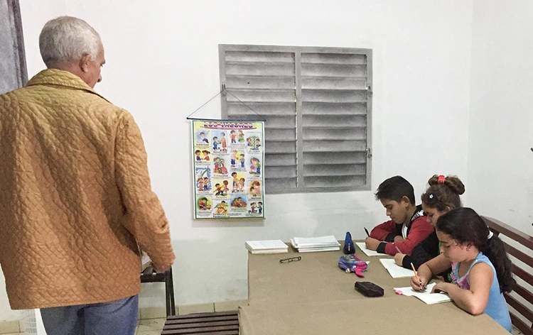 – Cuando estaba en cuarto grado, unos amiguitos de la escuela que estaban muy mal en Matemáticas empezaron a venir todas las tardes a repasar, y en poco tiempo mejoraron. Hoy están bien en la escuela, así que me embullé, y pregunté qué había que hacer para entrar. Me dijeron que hablar con la monjita Consuelo. Desde entonces vengo sin faltar, aunque esté lloviendo y haga frío, como hoy.