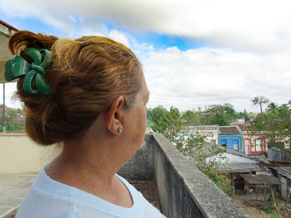 Desde la terraza de la casa parroquial en San Juan de los Yeras, una mujer contempla el árbol insignia del poblado. Una ceiba que se eleva sobre los tejados a la entrada de la localidad. Esa mujer es una de las miembros del taller de costura de Cáritas en la comunidad. Su nombre es Martha Sierra Calderón.