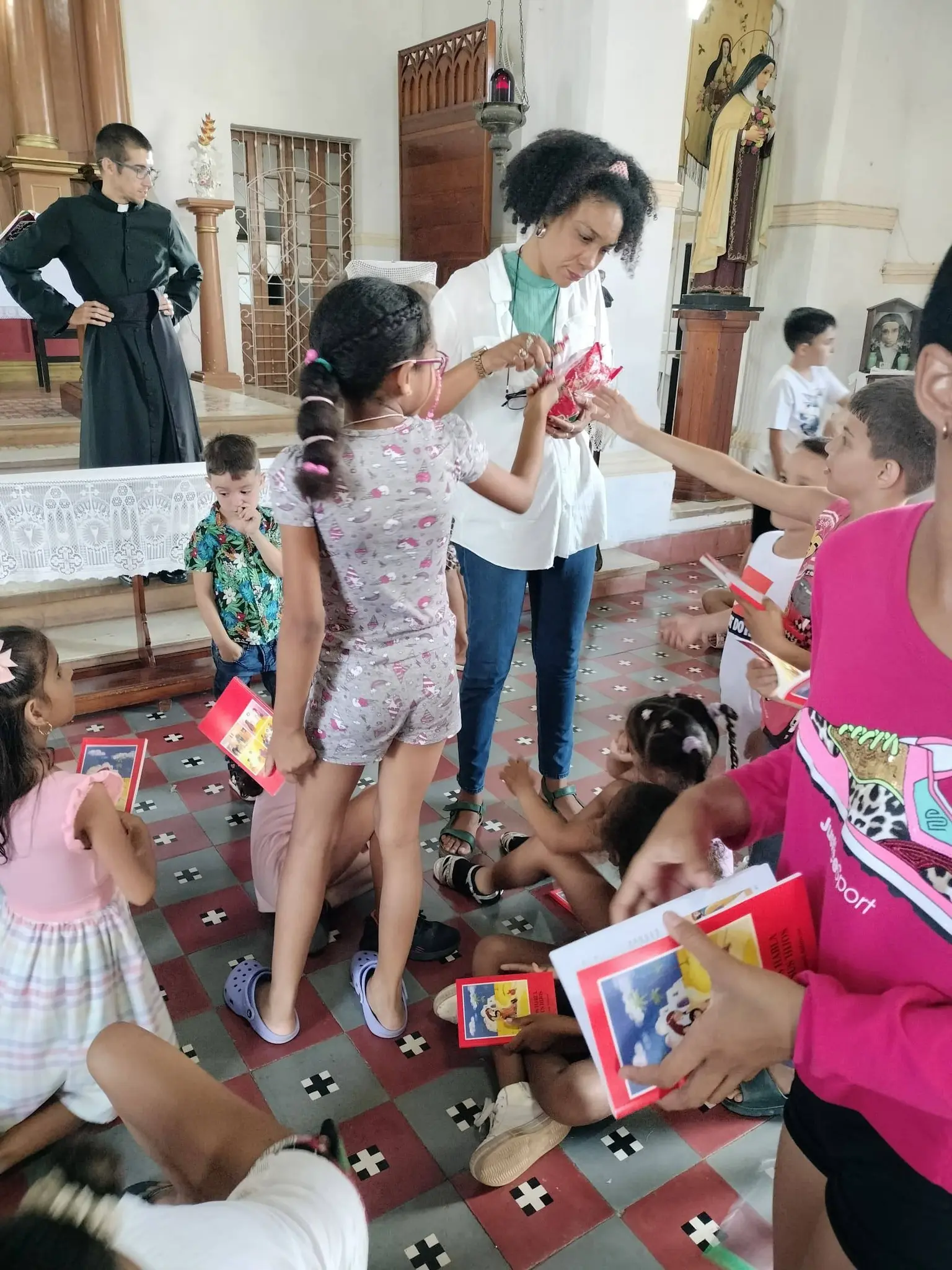 Y tampoco faltó el compartir fraterno en las parroquias Nuestra Señora del Sagrado Corazón, en Amarillas y Santa Catalina de Alejandría Virgen y Mártir de Pedro Betancourt, entre narraciones de cuentos, canciones, baile y mucho amor.
