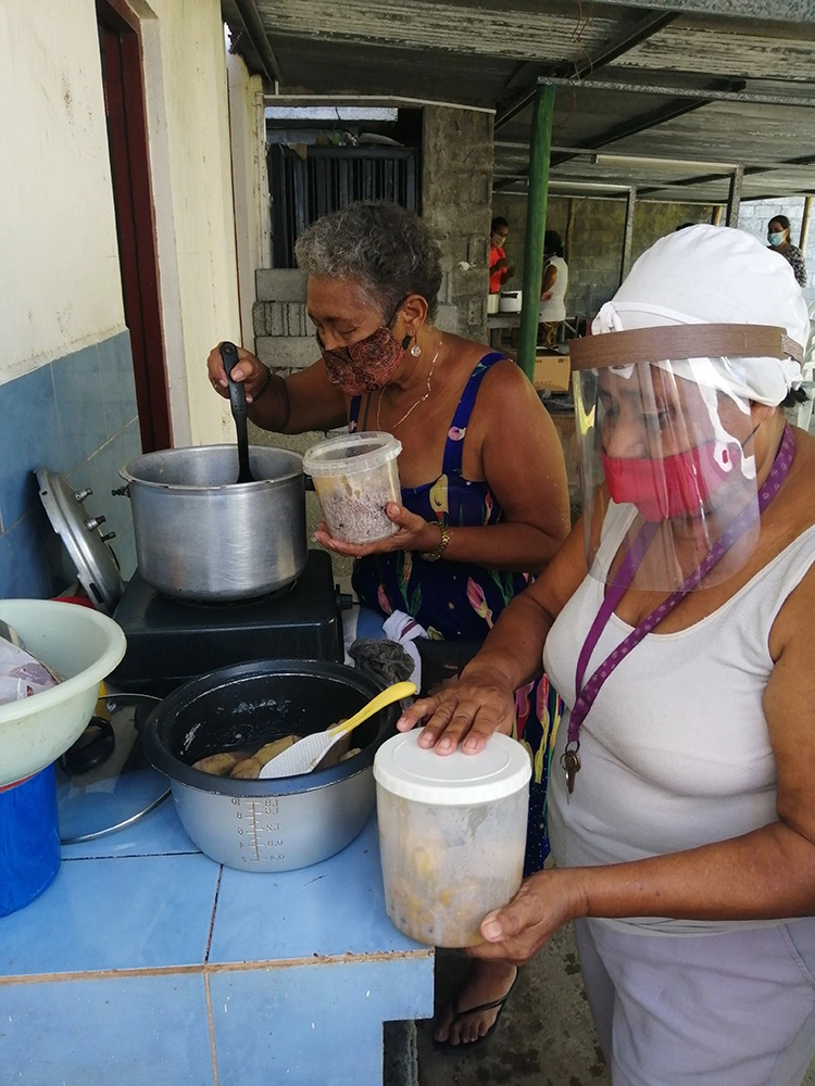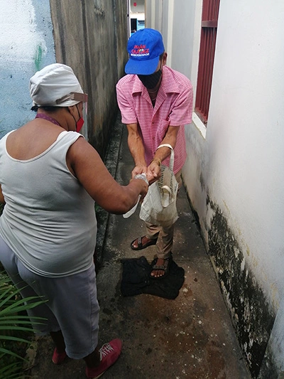 Varios voluntarios se encargan de preparar el menú cotidiano en las semanas de servicio, otros llevan la comida hasta las casas de quienes viven solos, son longevos o padecen discapacidades. A ellos agradecemos infinitamente su disposición y ayuda, su gesto de amor y honra al prójimo.
