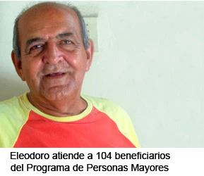 Esta historia de Eleodoro Valdés Ruiz comenzó en 2007 cuando se jubiló luego de trabajar durante 42 años. “Fui a ayudar en lo que pudiera en mi comunidad de la Santísima Trinidad —me cuenta—; en aquel entonces era allí donde ofrecían el desayuno a las personas mayores. Ellos no tenían quien fuera a recoger la leche al barrio La barranca, un sitio rural de aquí, y yo me brindé para hacerlo. De esa forma me quedé en el servicio para siempre. Cuando Cáritas se mudó para esta casita en 2009, se decidió que viniera a encargarme del desayuno; aunque yo ayudo en cualquier cosa que haga falta. Soy un pequeño colaborador en todas las actividades”.