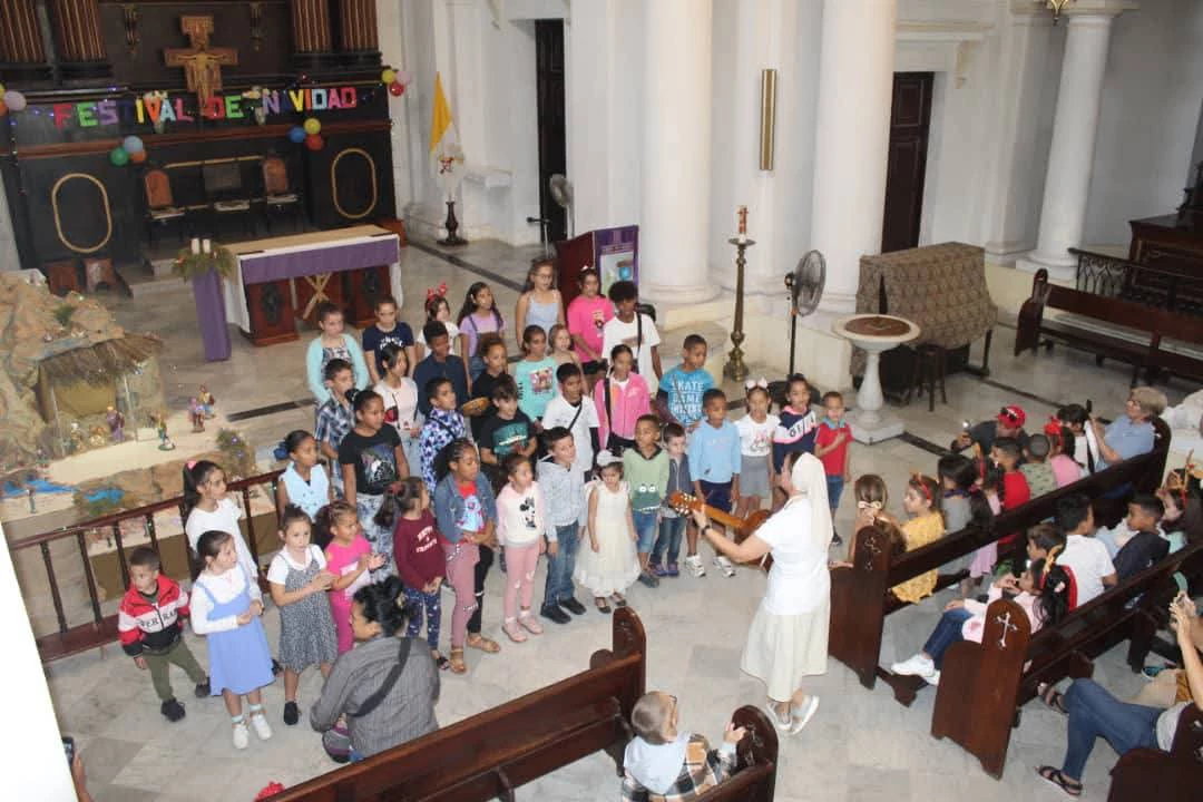 Sorprendida Sor Yadanne disfrutó de un video que ilustró momentos compartidos: festivales de Navidad, presentaciones en el Teatro Sauto… Después, una representación de alumnos de cada modalidad se acercó para ofrecerle un regalo: frases en inglés, dibujos, escenificaciones, bailes y la interpretación de un tema musical enseñado por ella.