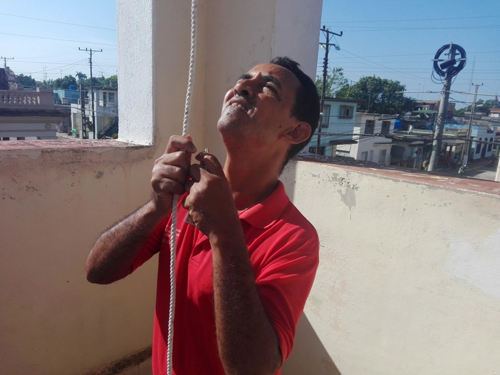 Otras llegan en las tardes del domingo, quizás su día preferido. Muy cerca de las 5:00 p. m. se empina hacia la torre del templo, por una escalera un poco estrecha y oscura. Ya en la cúspide, cual centinela del pueblo “empequeñecido”, agita la soga y complace a los moradores con el ruido habitual de los campanazos.